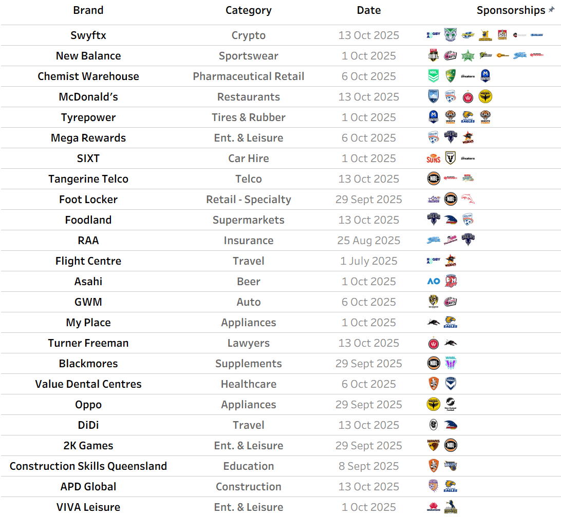 Swyftx has been the most active brand in the last 3 months, announcing new partnerships with Rugby Australia, NZ Warriors and the 5 x NZ Super Rugby teams.